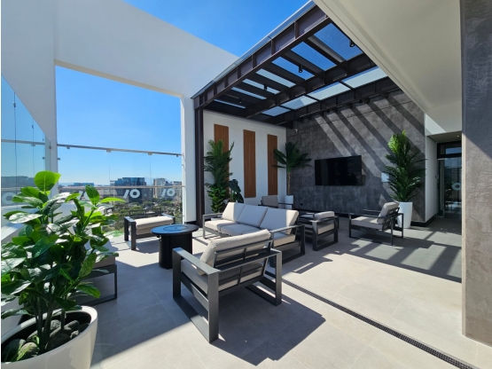 Amenidades: Gimnasio, piscina de entrenamiento, jacuzzi, coworking, rooftop cinema, social kitchen, terraza spa, camas para asolearse, sauna y duchas, sala de masajes, bar, calentadores, área de BBQ, Fire pit y frigobar.