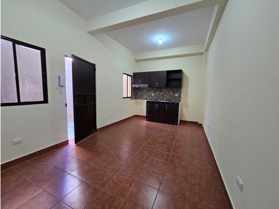 Sala–comedor – cocina con gabinetes, una habitación con closet, un baño.