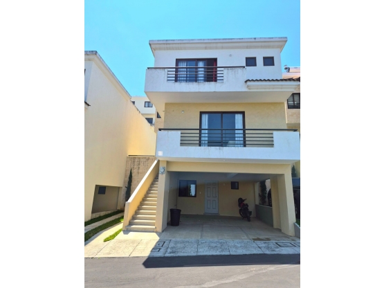 Extras de la Casa: Sala principal con mesa de centro de vidrio, televisor de 43”, comedor completo de 8 sillas, florero y centro de mesa, estufa, horno de microondas, refrigeradora lavadora y secadora en torre, sala familiar, 3 camas, galerías con cortinas, calentador eléctrico de paso, espejos en baños.