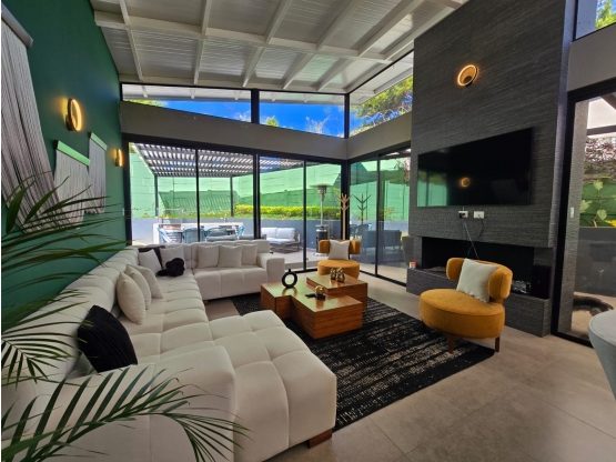 Parqueo techado para 2 vehículos. Sala con chimenea – comedor, ambos ambientes con salida a pérgola y jardín, cocina con gabinetes e isla. Baño de visitas.